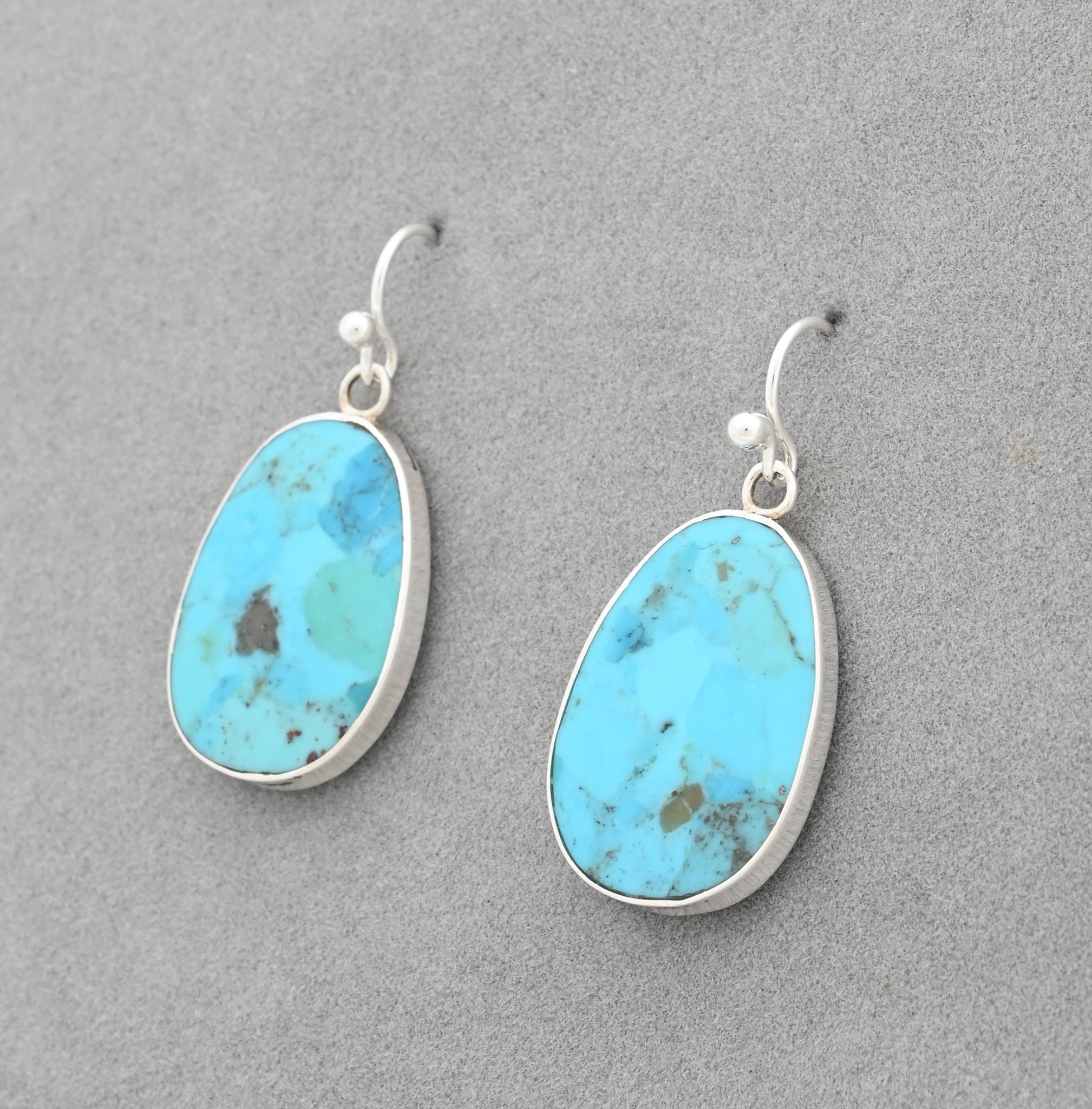 Earrings with Turquoise Slabs by Ronald Chavez (Navajo)
