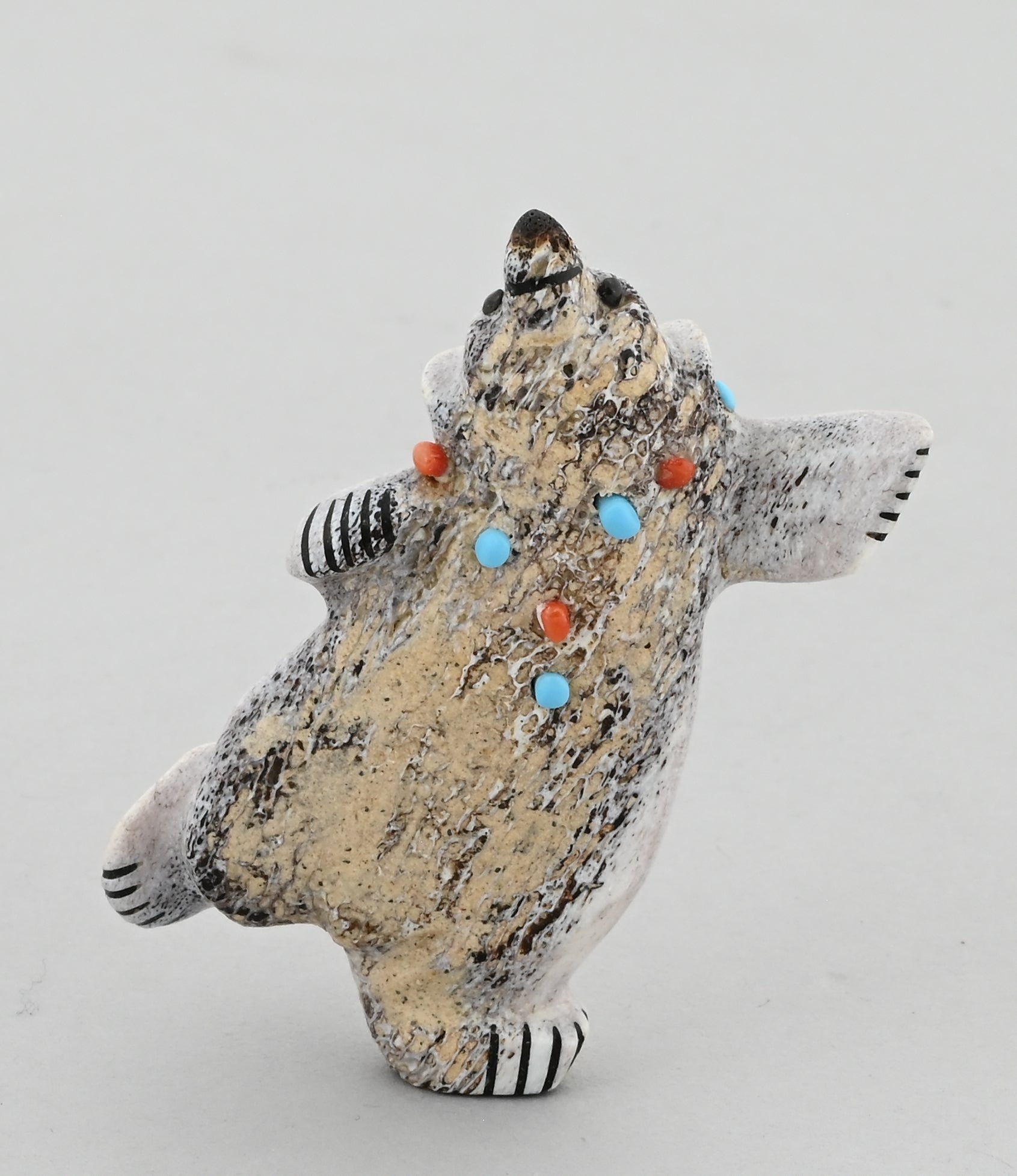 Joyful Dancing Bear carved from antler by Claudia Peina (Zuni Pueblo)