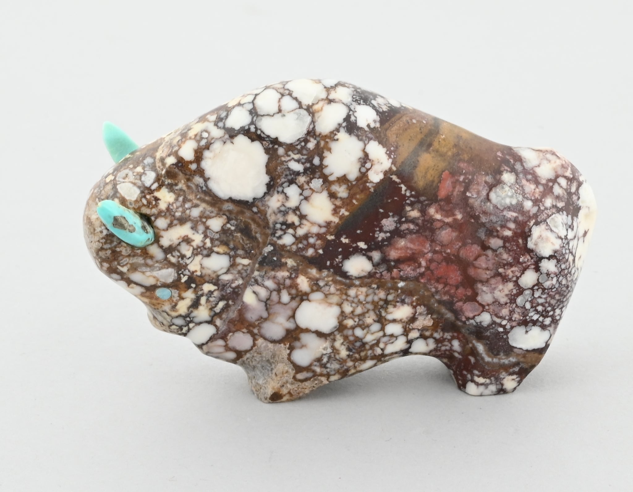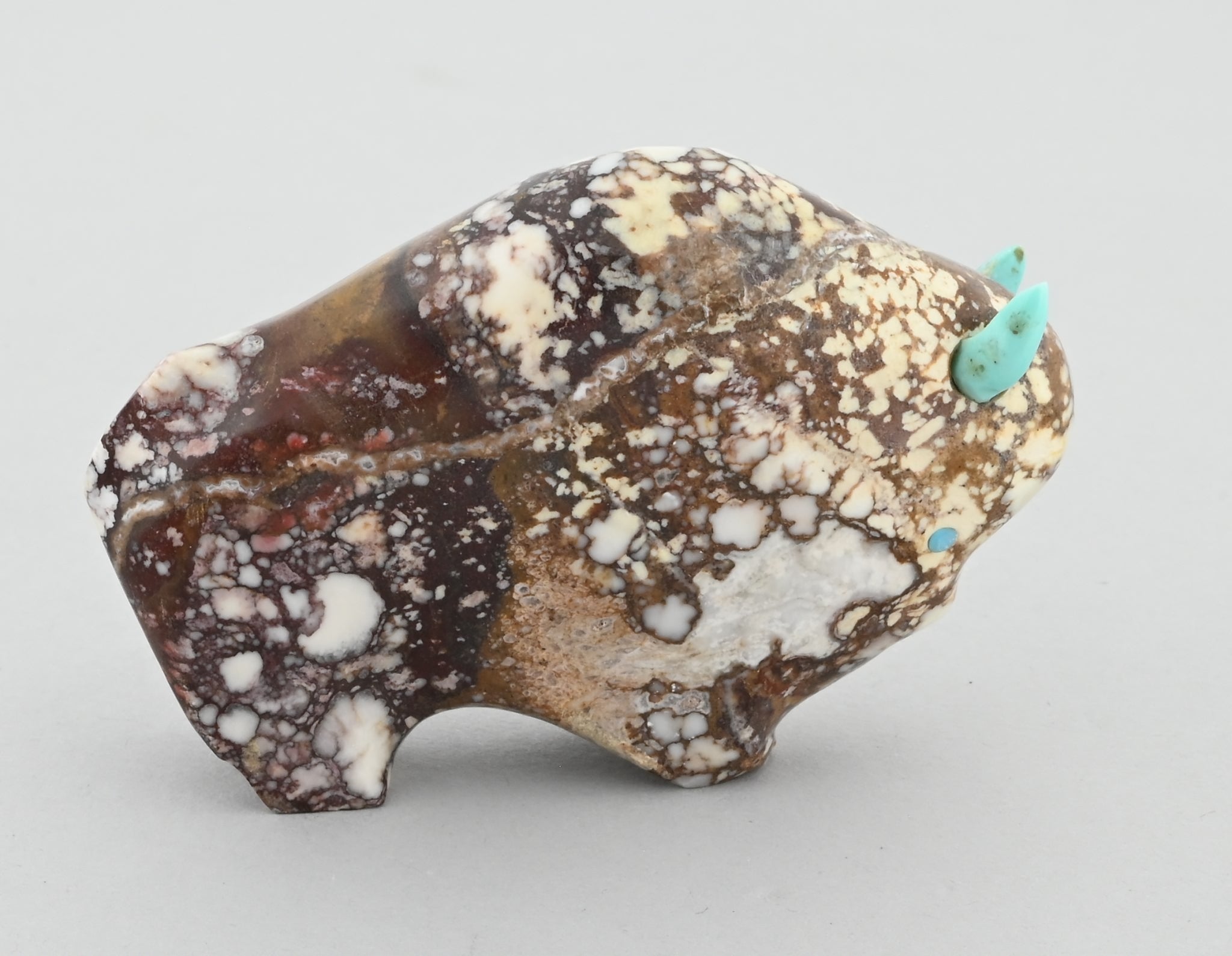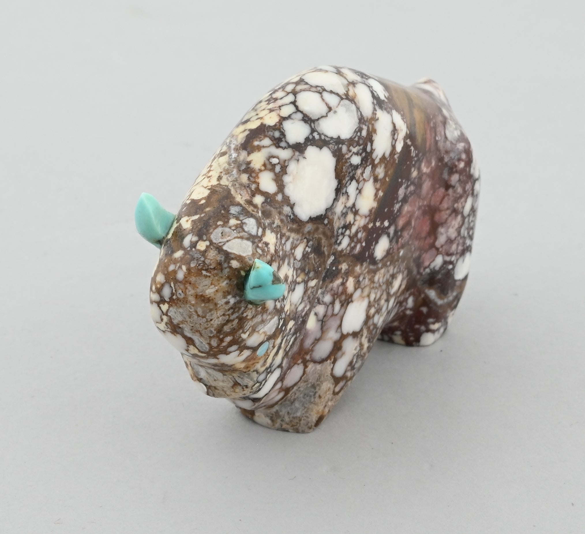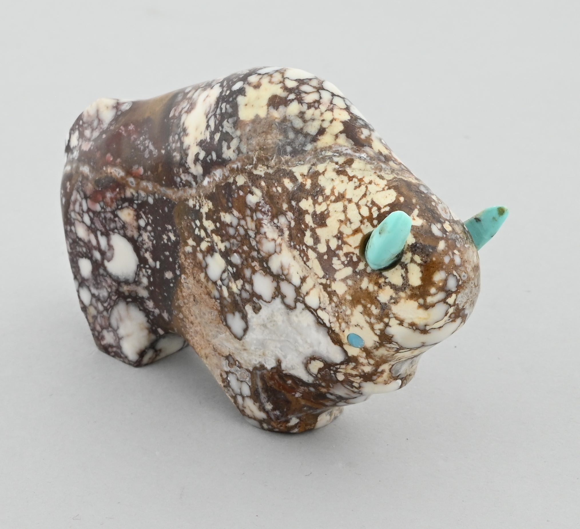 Buffalo Fetish - Magnesite with Turquoise horns carved by Lynn Quam (Zuni Pueblo). This one exudes power!