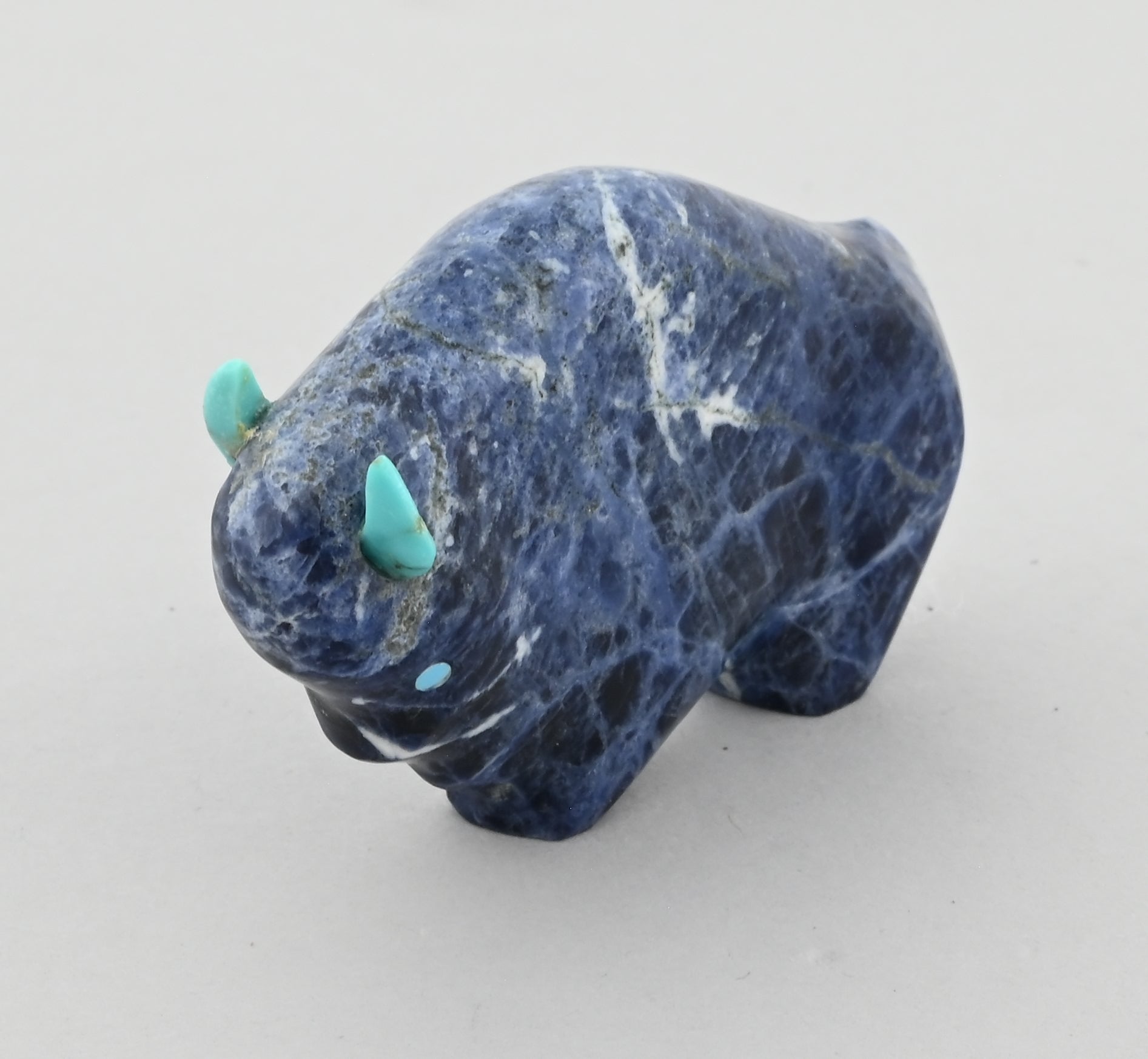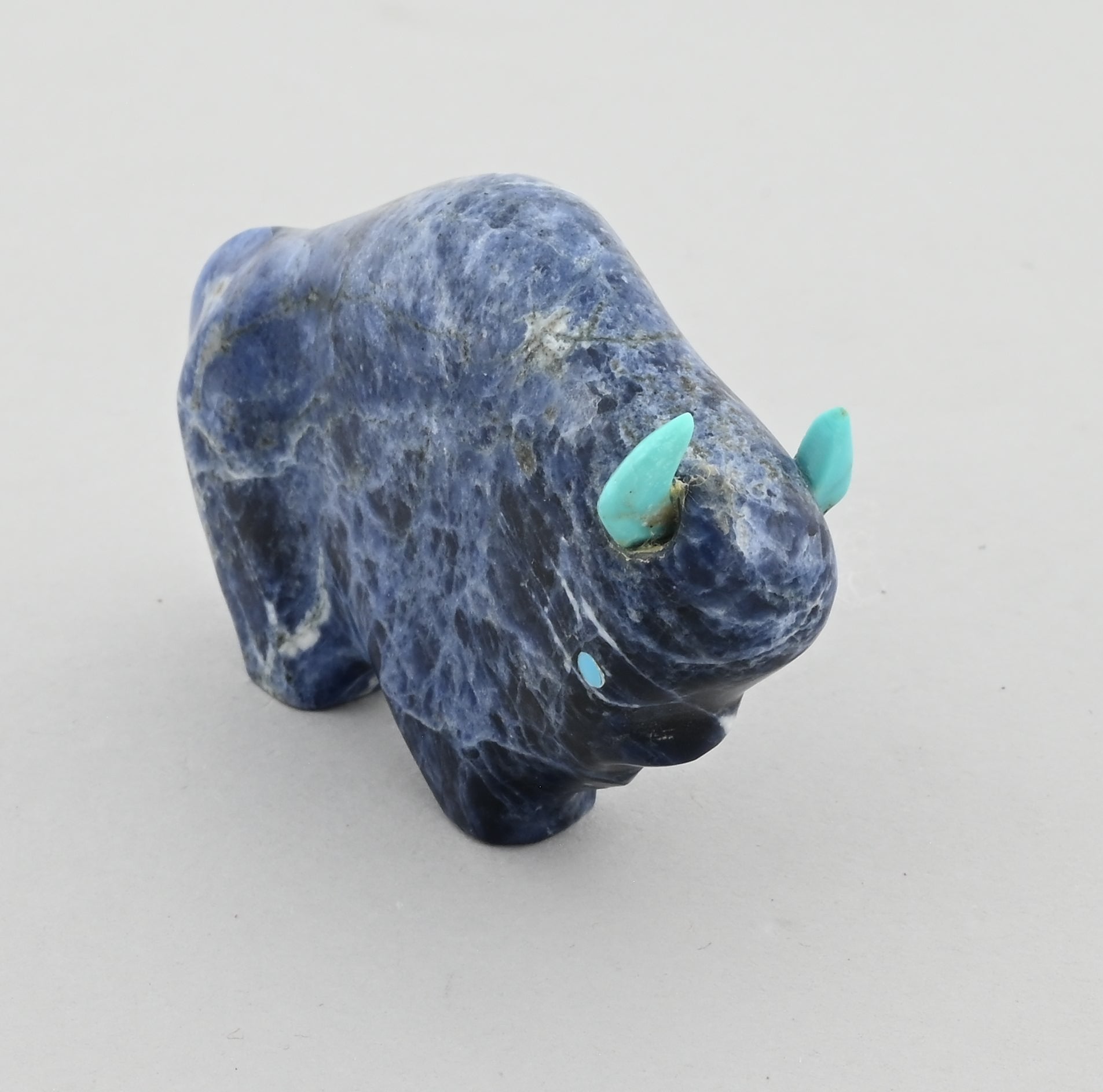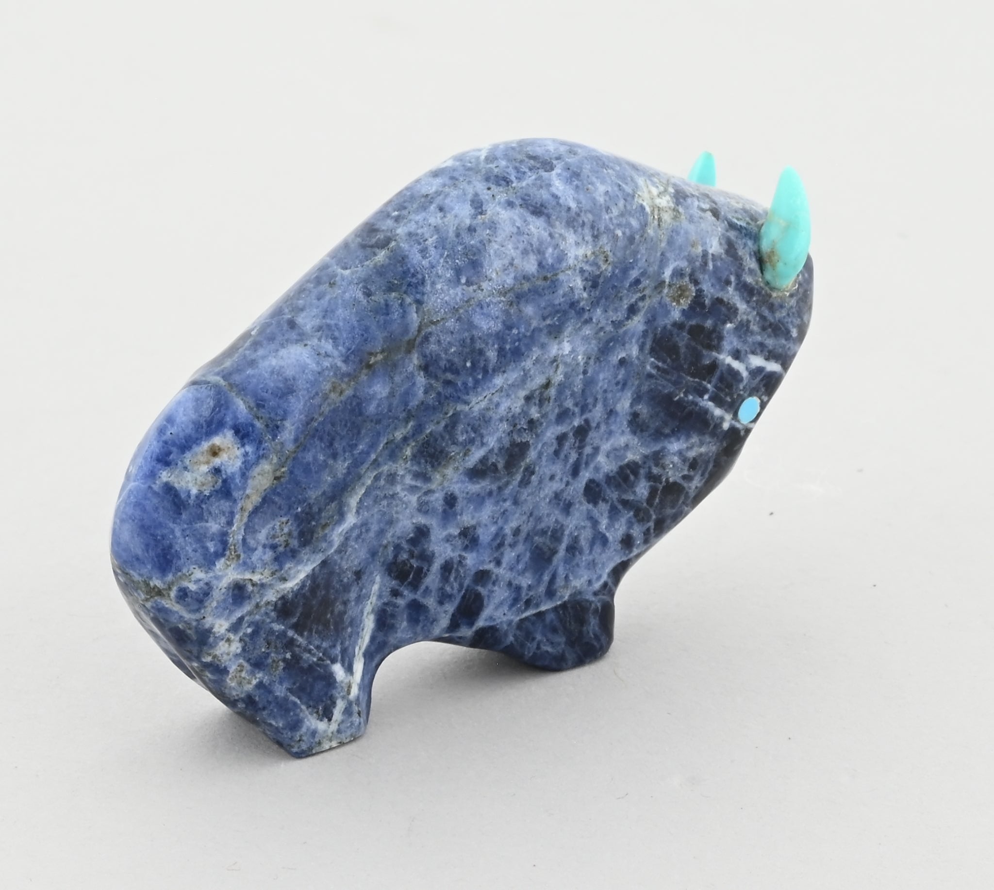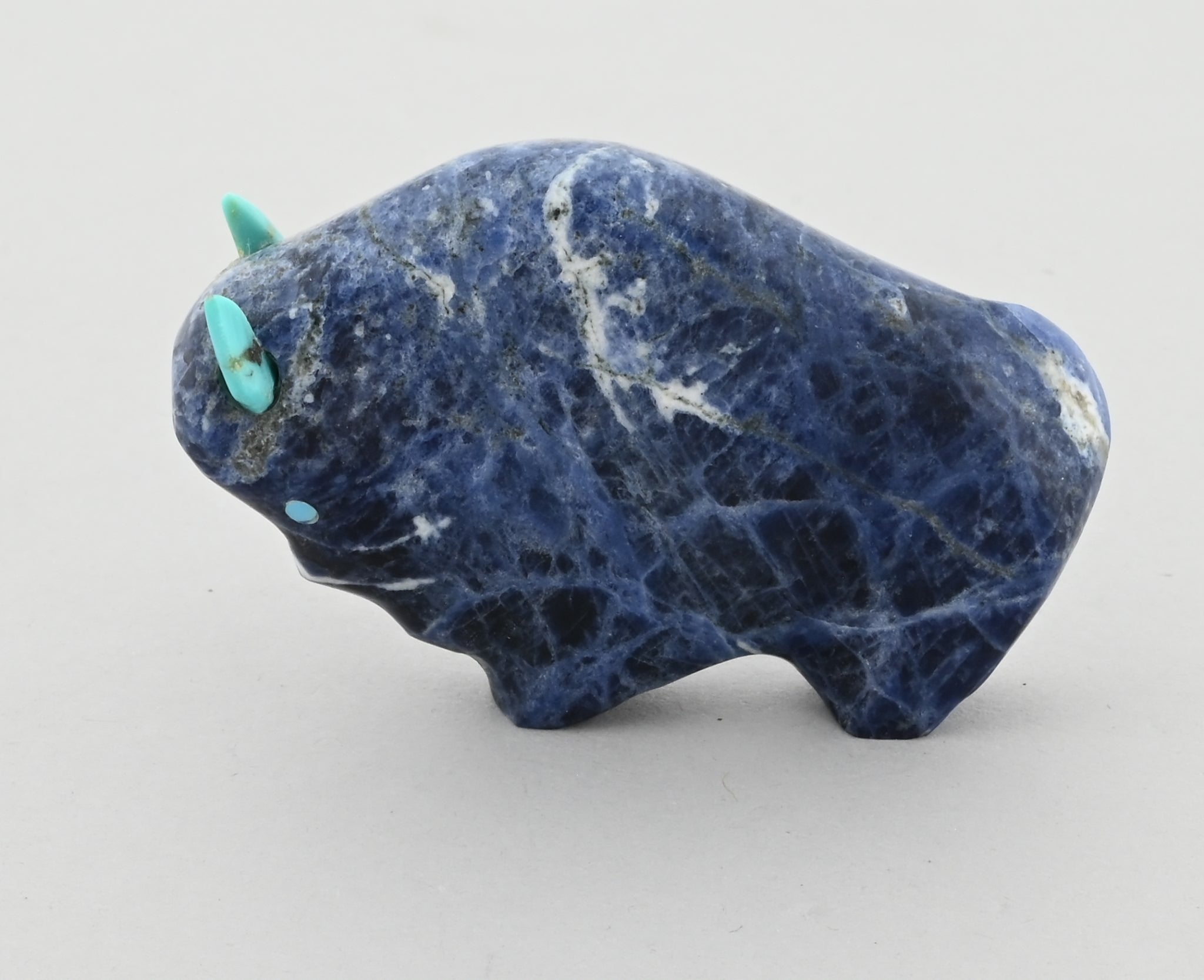 Nice "smaller" Buffalo Fetish carved by Lynn Quam (Zuni Pueblo). Turquoise horns.