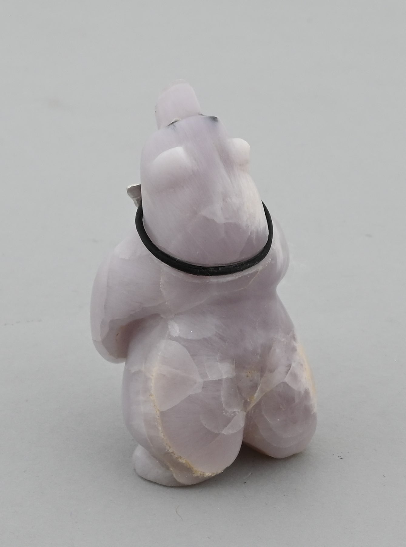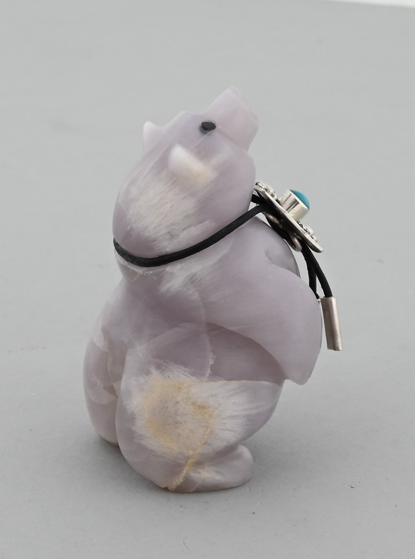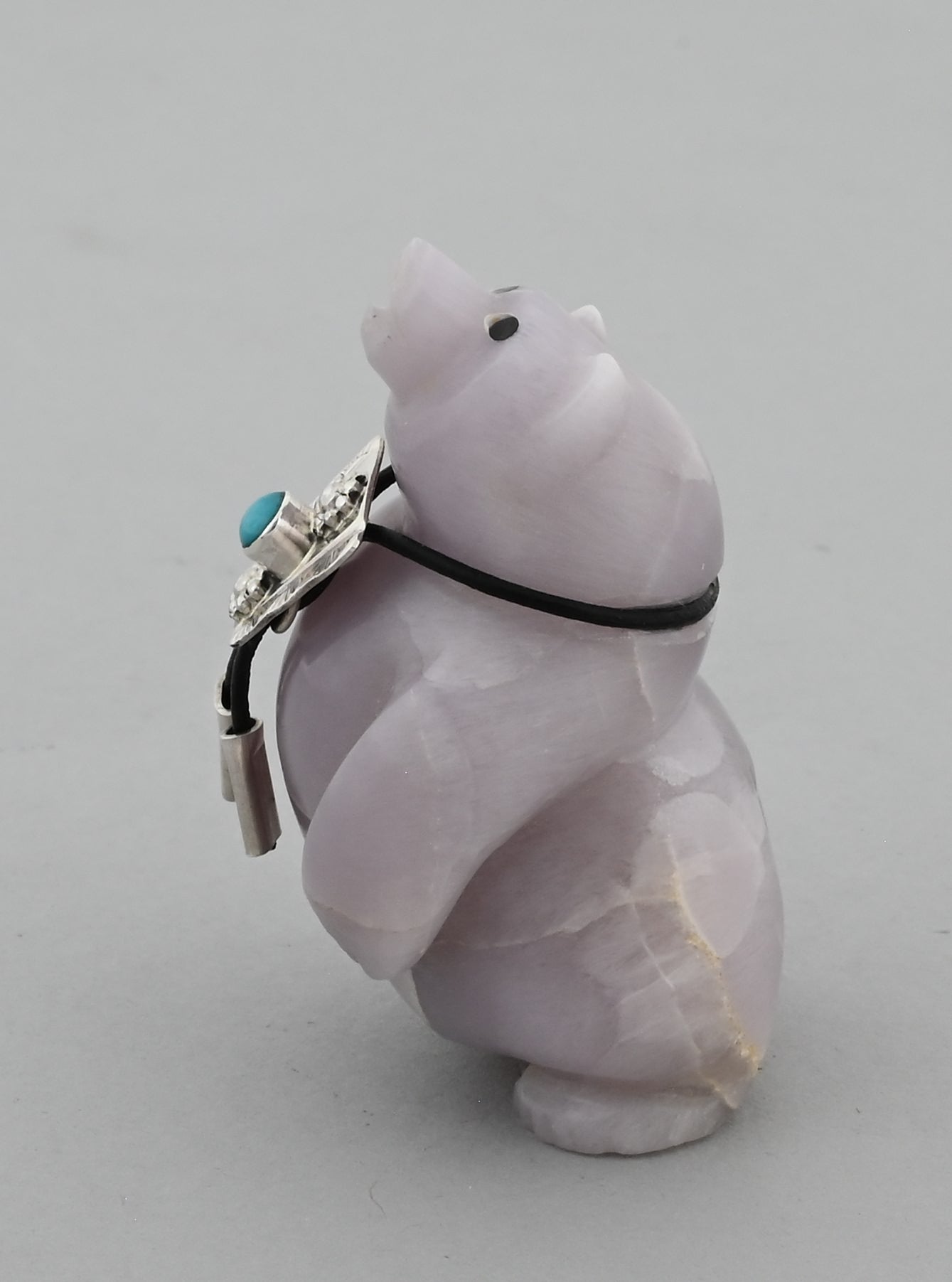 Shy Bear by Eddington Hannaweeke (Zuni Pueblo). Carved from Fluorite with a turquoise Bola Tie.
