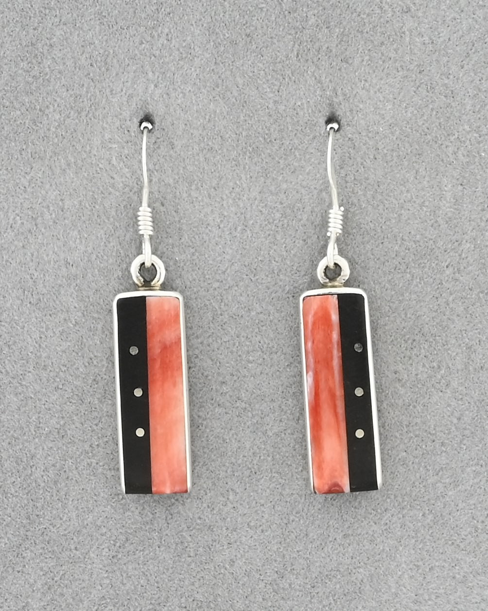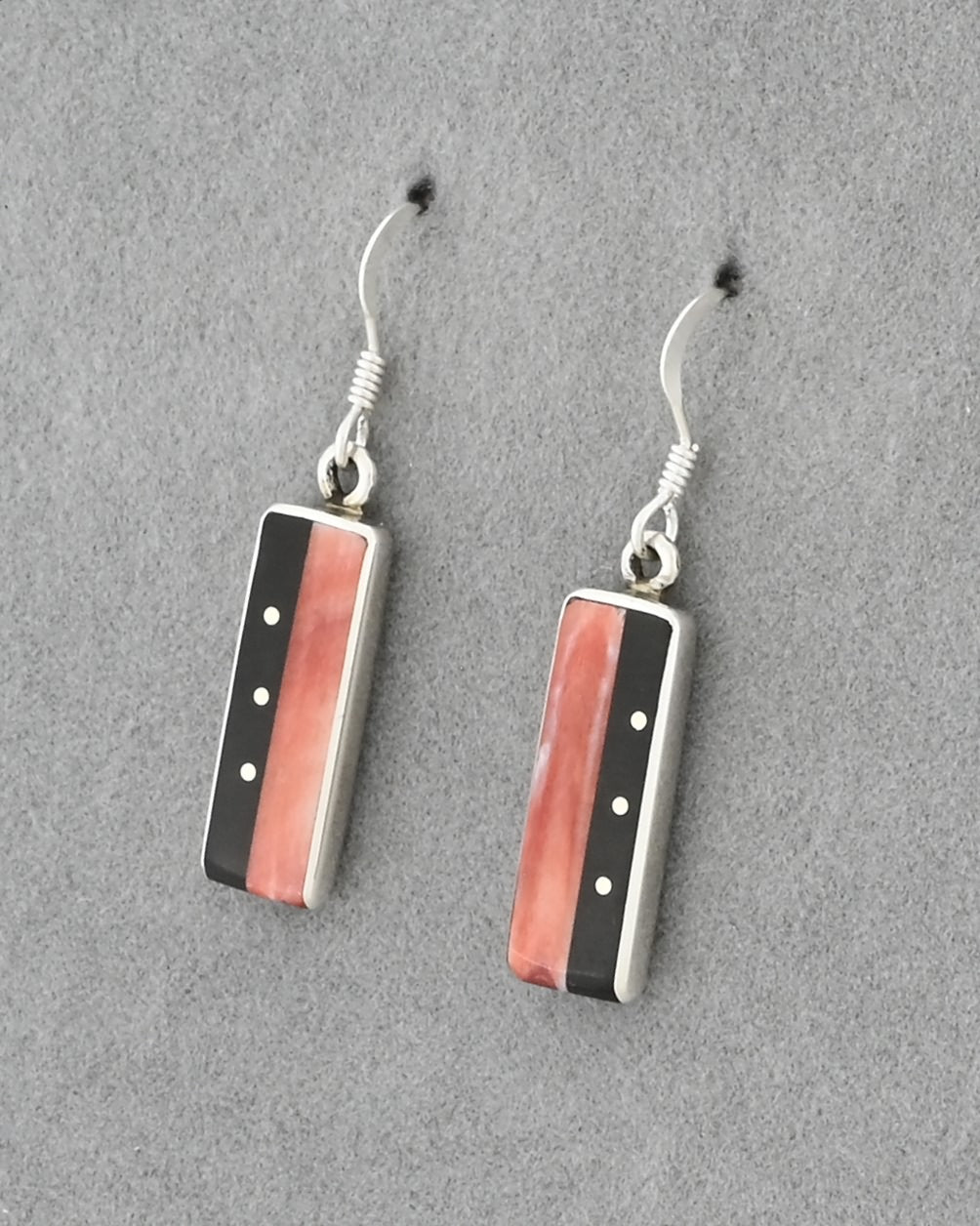 Rectangular Drop Earrings on wires with Sterling Silver dots.