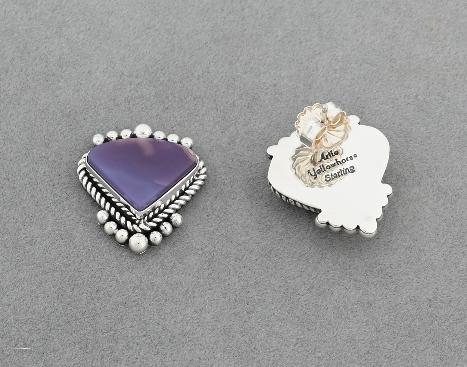 Post Earrings with Agua Nueva Agate by Artie Yellowhorse (Navajo)