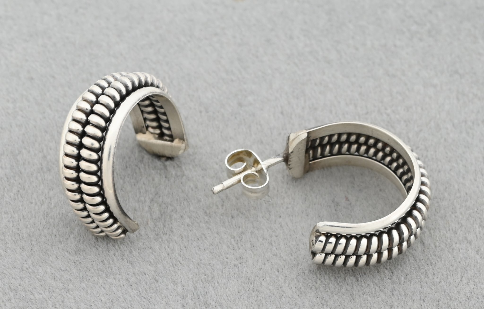 Earrings with "Phone Cord" Hoops by Caroline Tsosie (Navajo)