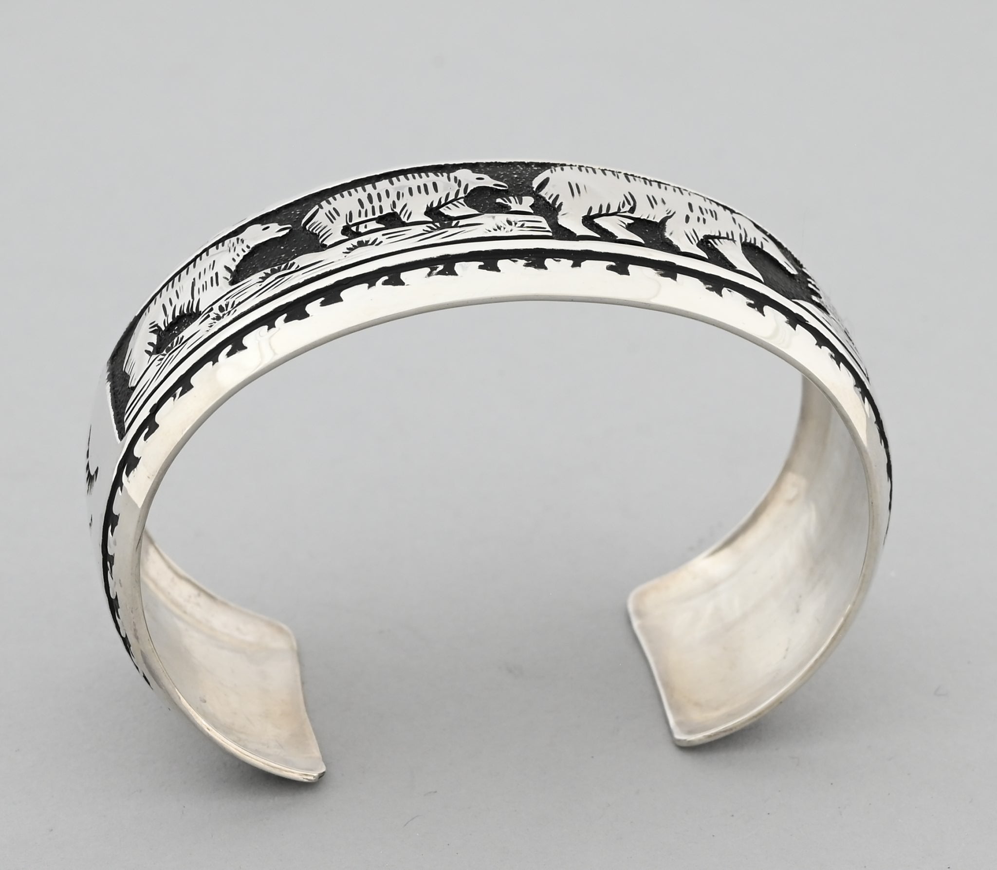 Bracelet with Mama Bear and Two Cubs by Rosalita Singer (Navajo)