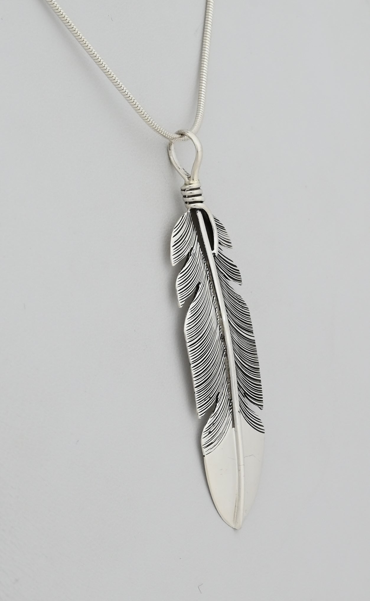 Pendant with Feather by Raymond Coriz (Navajo)