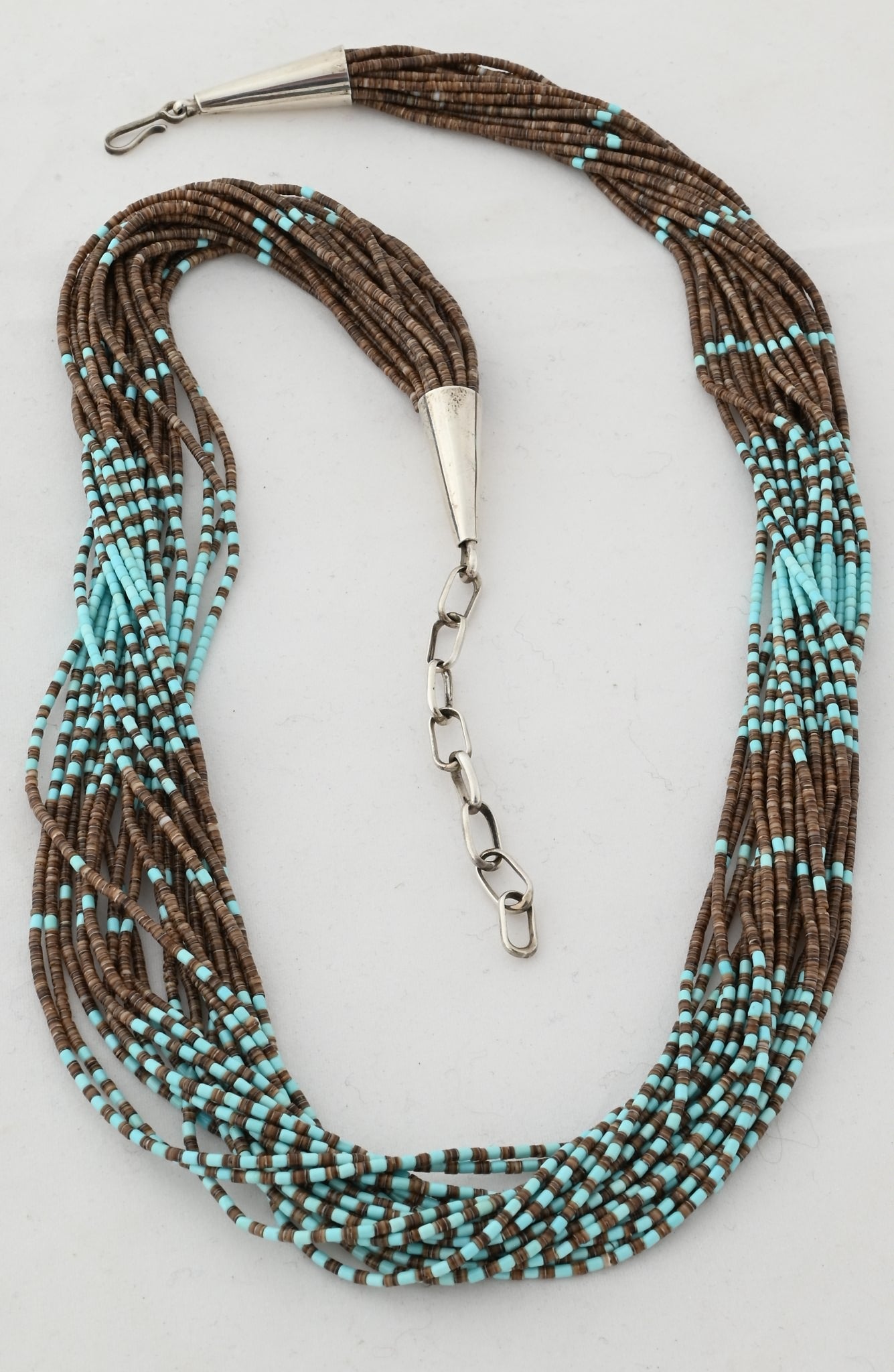 20 Strand Fine Heishe Necklace with Turquoise and Olive Shell (Santo Domingo Pueblo; Artist unknown)